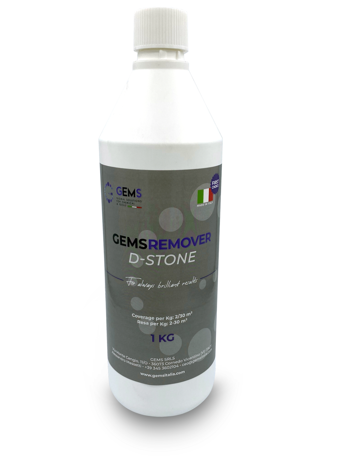 GemsRemover D-STONE does not produce unpleasant odours or dangerous fumes and is dilutable in water. The product is acid-based: therefore it is not recommended to use it on polished or brushed marble and limestone.